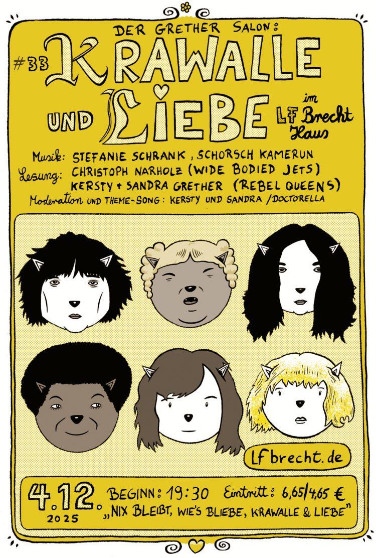 Und weiter gehts am 4.12. mit der 33. Edition von KRAWALLE UND LIEBE – der Grether-Salon mit fulminantem Programm.