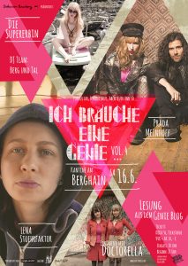 ICH BRAUCHE EINE GENIE – Popkultur, Feminismus, Abenteuer und so. Volume 4 Kantine am Berghain: Samstag, 16.6. 2018 Einlass: 20 h Beginn: 21 h. VVK: 9 Euro, AK: 10 Euro VVK-Links: https://www.koka36.de/ich-brauche-eine-genie-volume-4_ticket_98835.html (KOKA36) https://www.ticketbu.de/produkte/105-tickets-ich-brauche-eine-genie-kantine-am-berghain-berlin-am-16-06-2018 (Ticketbude) FB-Event: https://www.facebook.com/events/243509089737397/ Live-Performance: Prada Meinhoff, Lena Stöhrfaktor, Die Supererbin Lesung: aus unserem neuen Blog http://www.ichbraucheeinegenie.de/ DJ-Team: Berg und Tal Hosts […]